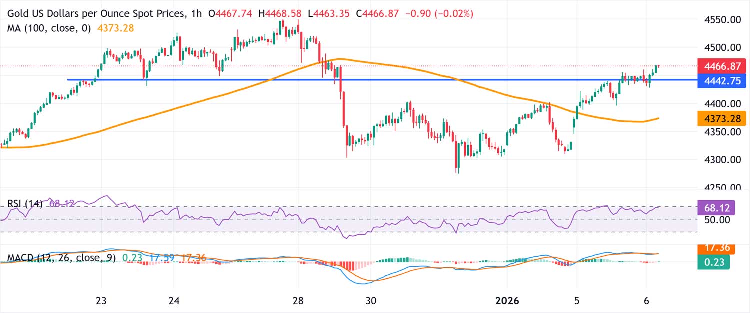 From a technical standpoint, the recent breakout above the 100-hour Simple Moving Average (SMA), followed by a move through the $4,445–4,450 congestion zone, is viewed as a constructive signal for XAU/USD bulls.