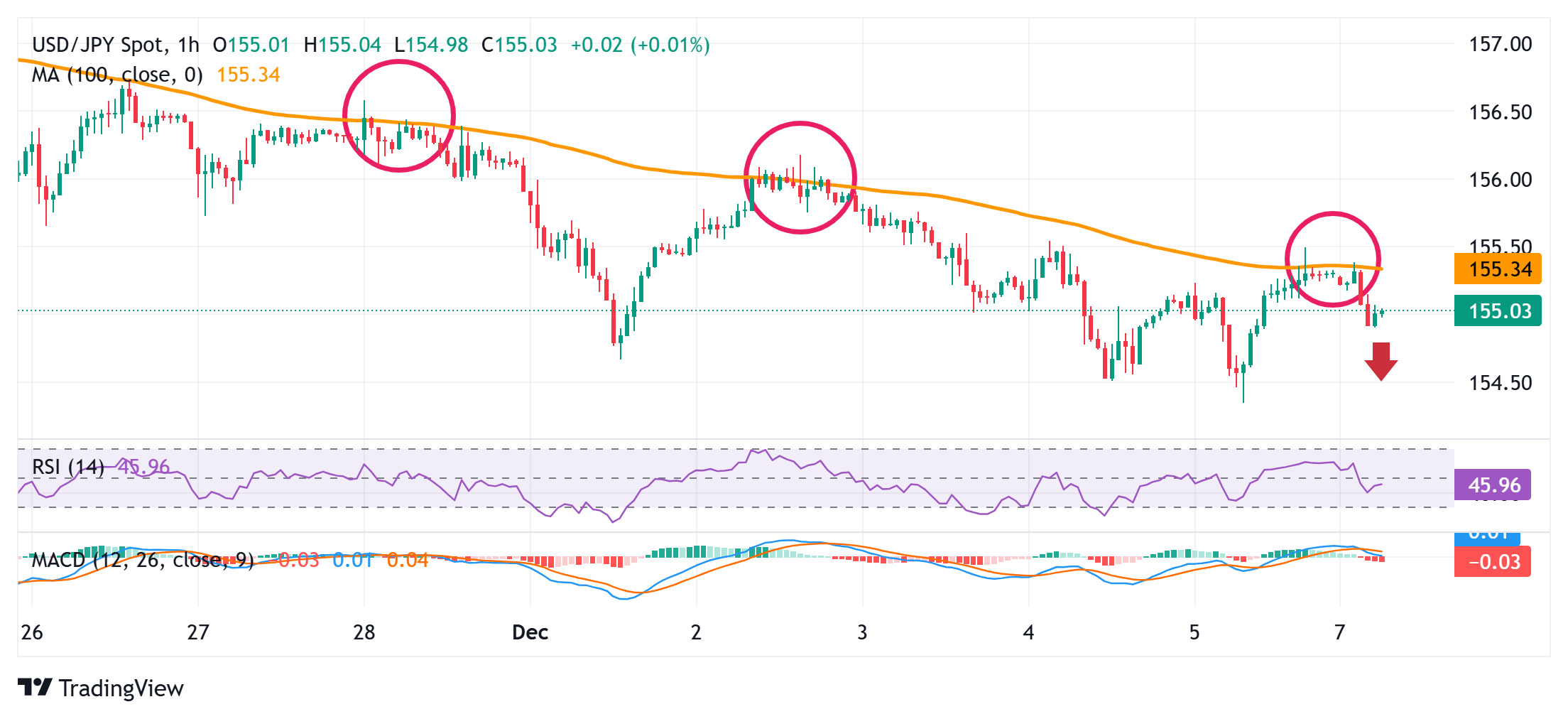 USD/JPY has repeatedly failed to break above the 100-hour Simple Moving Average (SMA), reinforcing a bearish near-term outlook. Hourly technical indicators remain in negative territory, signaling potential downside, though neutral daily oscillators call for caution.