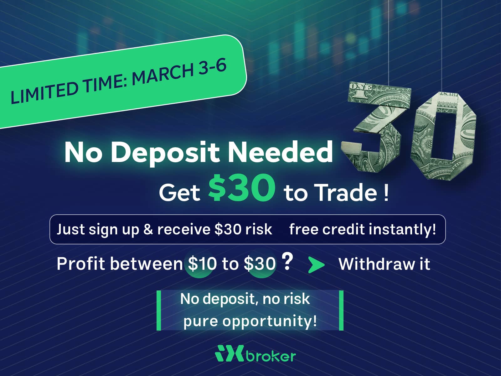 In this special campaign, all customers can receive a $30 trading credit. The validity period of this credit is three days, and if they can make a profit between $10 and $30 during this period, the profit earned, up to a maximum of $30, will be withdrawable.