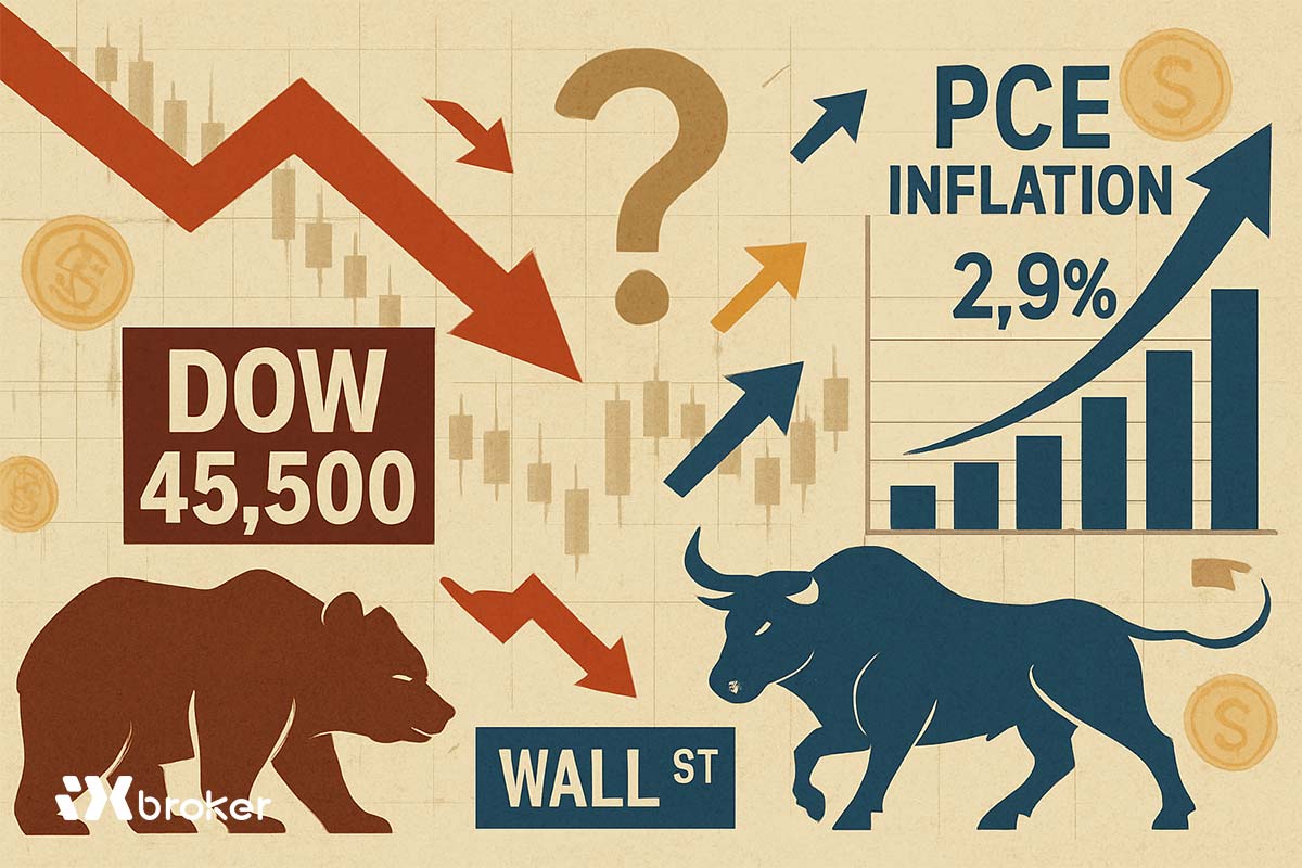شاخص صنعتی داوجونز (DJIA) روز جمعه افت کرد و به زیر سطح ۴۵,۵۰۰ واحد بازگشت؛ زیرا سرمایه‌گذاران به افزایش تازه در شاخص هزینه‌های مصرف شخصی (PCE) ایالات متحده واکنش نشان دادند. با وجود فشارهای فزاینده تورمی، بازارها همچنان به‌طور جدی انتظار دارند که فدرال رزرو (Fed) در ماه سپتامبر نرخ بهره را کاهش دهد.