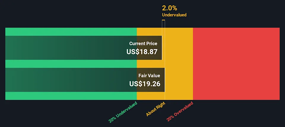تحلیل جریان نقدی تنزیل شده (DCF) ارزش منصفانه نزدیک به ۲۸.۹۸ دلار را نشان میدهد که حاکی از آن است سهام هنوز حدود ۴٪ کمتر از ارزش ذاتی معامله میشود. این ارزیابی خوشبینانهتر فرض میکند که جریان نقدی رو به بهبود — به جای رشد سرخط درآمد — در نهایت بازده سهامداران را هدایت خواهد کرد.