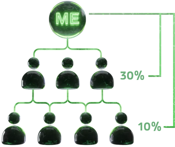 With the 3-tier structure, you earn income not only from your direct referrals but also from the activity of sub-IBs under them:
